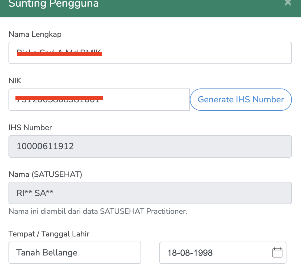 Pastikan seluruh petugas yang terlibat sudah memiliki IHS Number, meliputi: