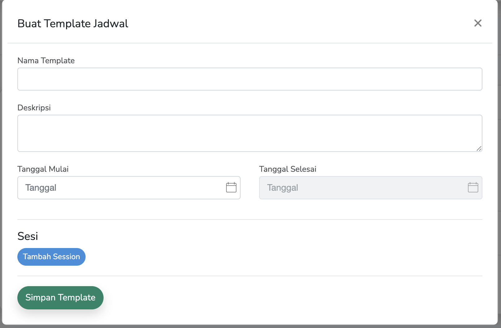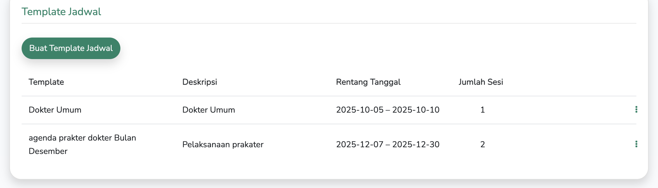Semua tanggal dalam rentang tersebut akan otomatis menampilkan jadwal yang sudah diatur di template.
