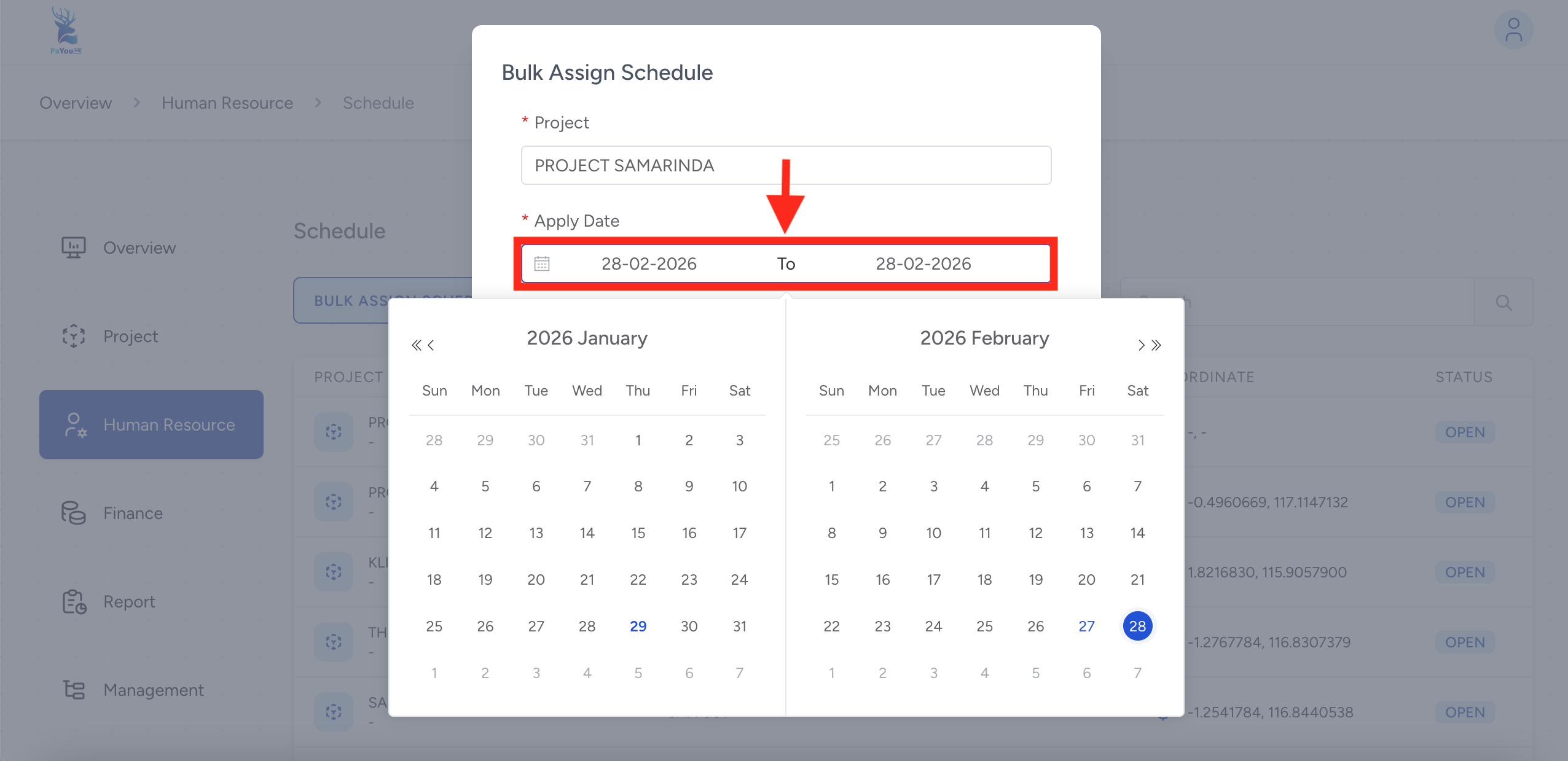 Pengaturan jadwal kerja yang terorganisir adalah kunci kelancaran operasional dan akurasi absensi karyawan. Panduan ini dirancang untuk membantu Administrator HR dalam melakukan penugasan jadwal shift secara kolektif (Bulk Assign) melalui sistem PaYou HR. Anda dapat menetapkan periode kerja, memilih jenis shift, hingga memverifikasi penempatan karyawan pada proyek tertentu secara cepat dan akurat dalam satu platform terintegrasi. Simak tata cara Penugasan Jadwal Shift Kerja pada karyawan di PaYou HR berikut ini: