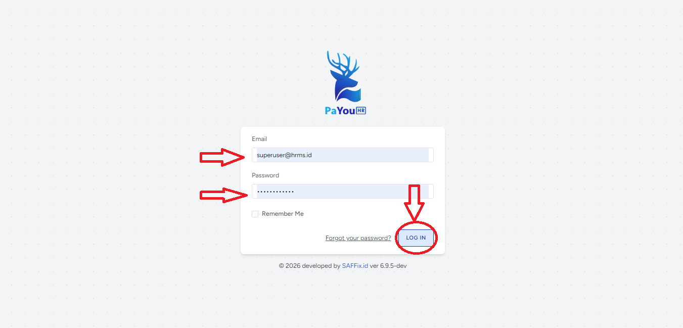 Klik halaman login PaYou HR di pojok kanan atas.