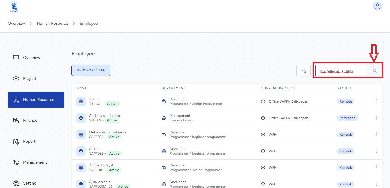 Cari dan pilih nama karyawan yang akan dihubungkan komponen payroll