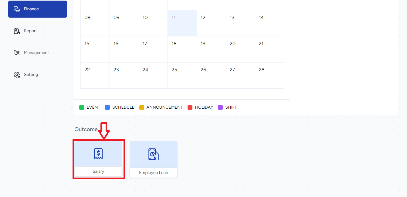 Masuk ke menu Finance > Salary.