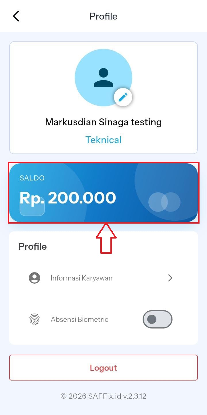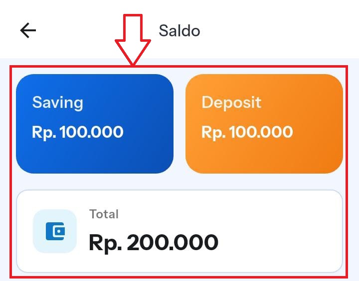 klik ikon saldo berwarna biru untuk melihat rincian detail Saldo tersimpan