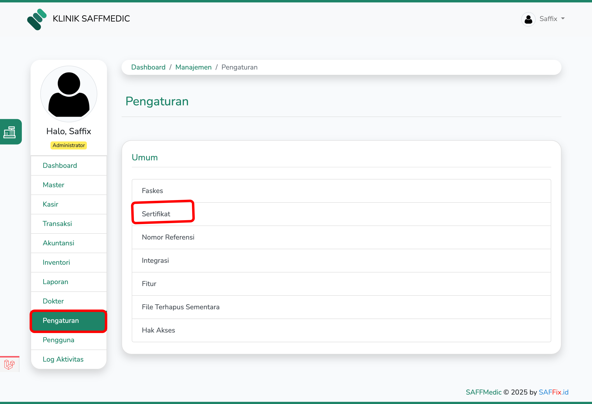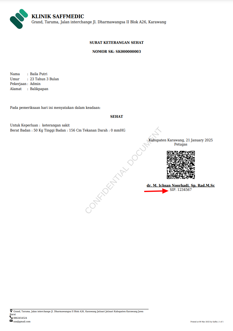 Berikut adalah langkah-langkah untuk menambahkan Surat Izin Praktek (SIP) pada SAFFMedic: